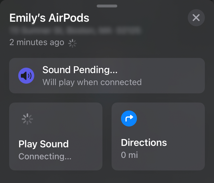 I got a message saying Sound Pending. This helps you find the AirPods if youve lost them somewhere nearby. The sound will gradually get louder as it plays for two minutes.