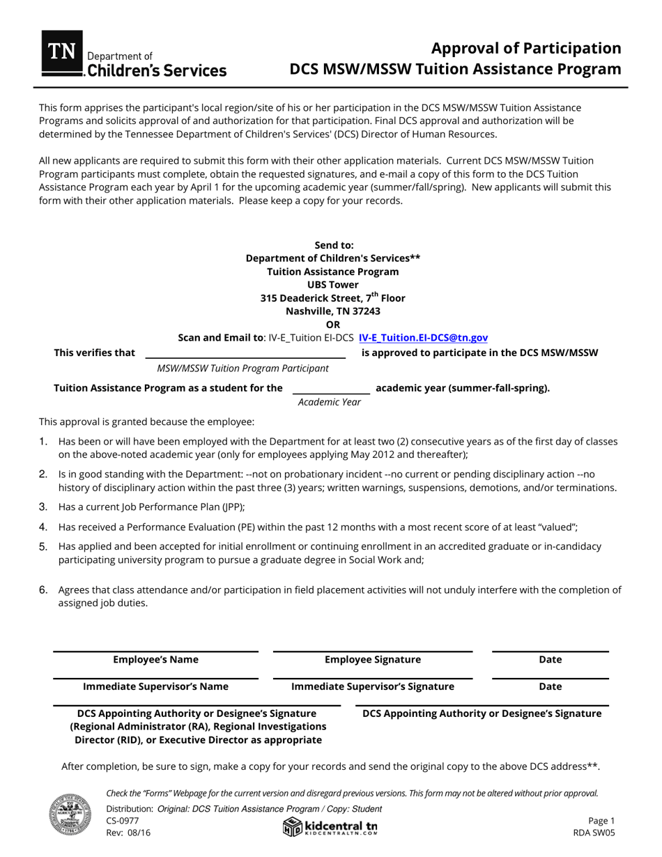 Form Cs 0977 Download Fillable Pdf Or Fill Online Approval Of Participation Dcs Msw Mssw Tuition Assistance Program Tennessee Templateroller